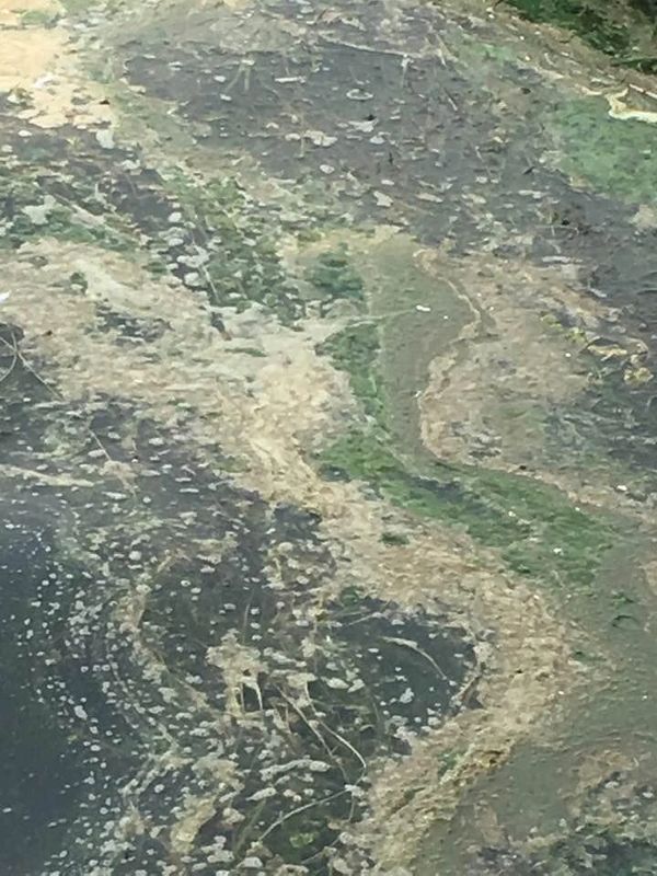 HABs may look like green dots, clumps or globs on the water surface. Location not known.